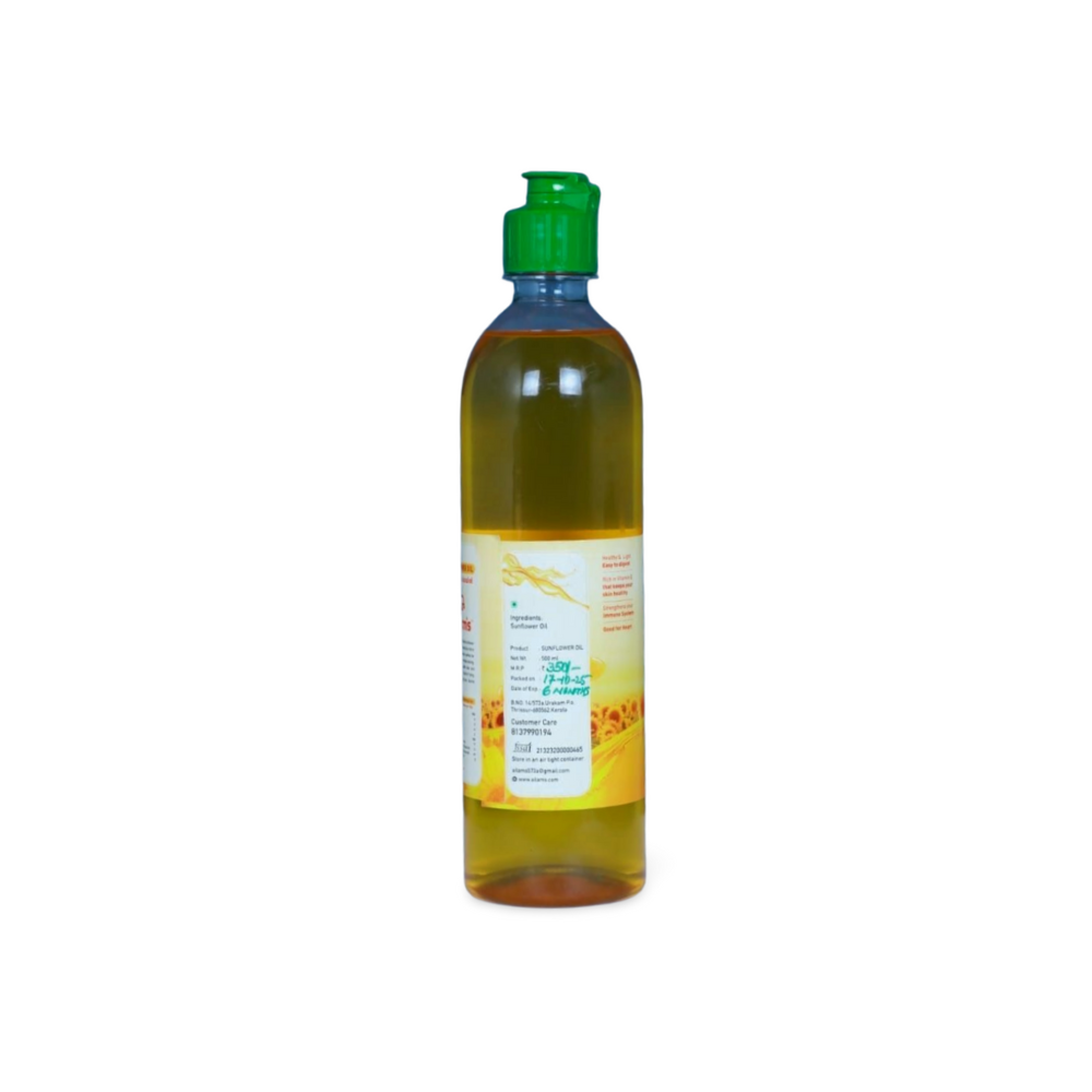 Ailam’s Sunflower oil is 100% pure, hexane-free, and cold pressed from premium, oil-rich sunflower seeds. These seeds are meticulously selected and processed in-house to retain full nutritional value with no additives or preservatives.